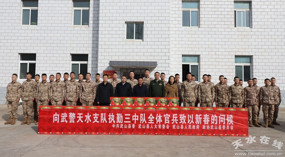 新武山訊(記者 王繼明)1月21日,在新春佳節(jié)即將到來之際,帶著全縣人民的深情厚誼,縣委常委、政法委書記王想成,縣委常委、人武部政委郗智聰,副縣長(zhǎng)、縣公安局局長(zhǎng)王根紅深入縣人武部、武警天水支隊(duì)執(zhí)勤三中隊(duì)、武警天水支隊(duì)武山縣中隊(duì),看望慰問駐地部隊(duì)官兵,共話軍民魚水情誼,共謀軍民共建工作,為駐地部隊(duì)官兵送上慰問品,并致以節(jié)日問候和新春的祝福。