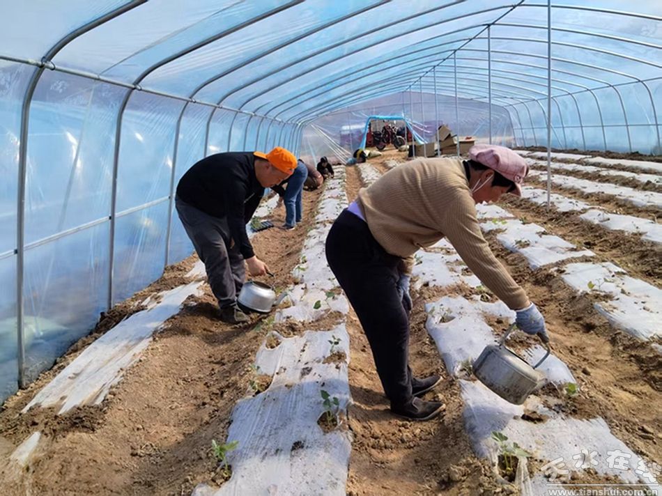 打眼、點(diǎn)種、鋪膜……在翻熟的土壤里,頡福琴手法嫻熟地種植馬鈴薯!斑@幾天天氣非常好,我想著趕緊把10畝洋芋種完,還有6畝多的架豆,苗已經(jīng)移上了。”頡福琴說。