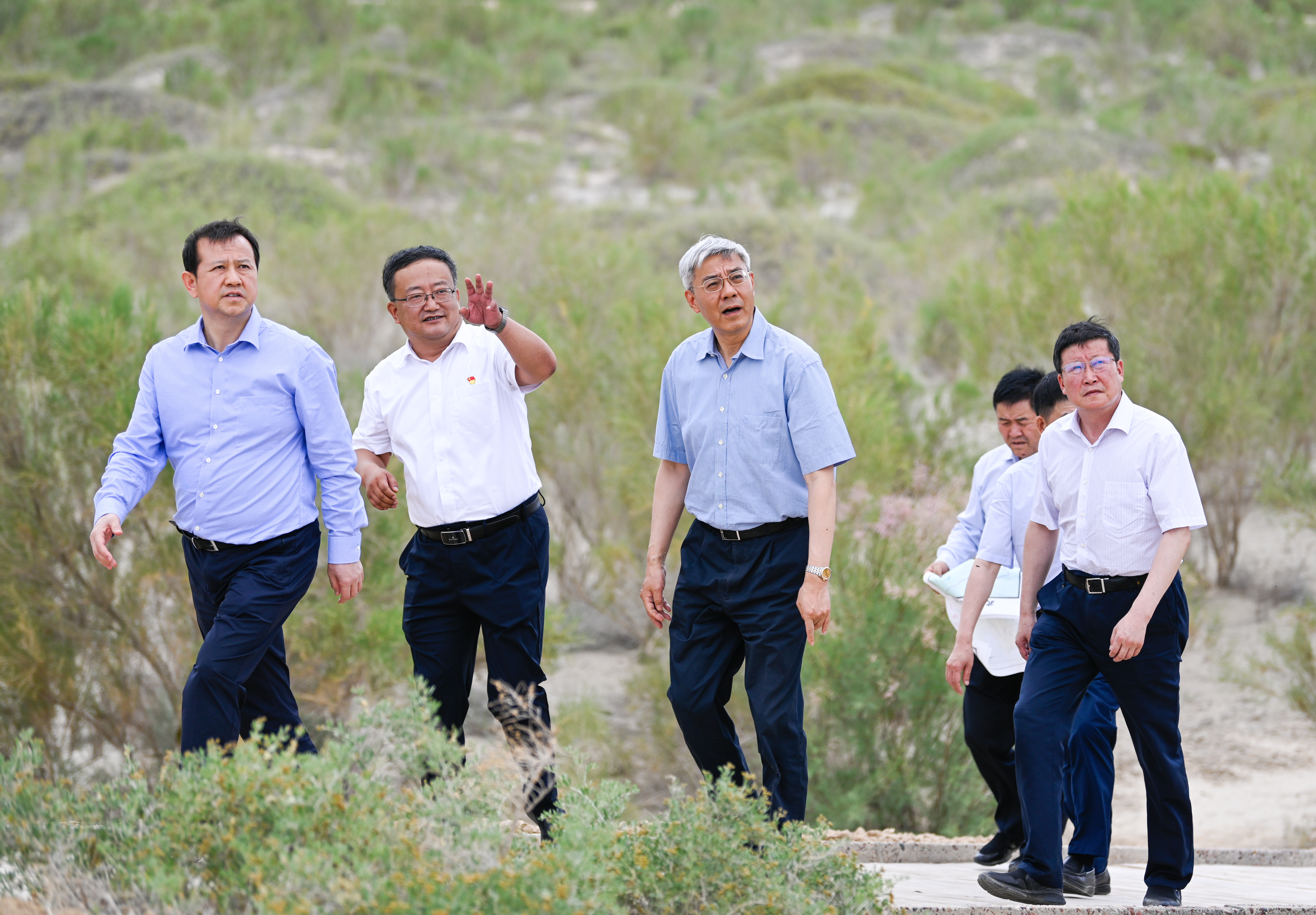 青土湖曾經(jīng)是民勤綠洲北部最大的風(fēng)沙口。尹弘詳細(xì)了解青土湖區(qū)域治沙造林、濕地保護(hù)修復(fù)情況。他指出,生態(tài)文明建設(shè)關(guān)乎千秋大計(jì),要對“國之大者”心中有數(shù),牢牢扛起生態(tài)保護(hù)政治責(zé)任,堅(jiān)決筑牢國家西部生態(tài)安全屏障。要堅(jiān)持綠色發(fā)展,正確處理好生態(tài)環(huán)保和經(jīng)濟(jì)發(fā)展的關(guān)系,促進(jìn)生態(tài)產(chǎn)業(yè)化、產(chǎn)業(yè)生態(tài)化,實(shí)現(xiàn)生態(tài)效益、經(jīng)濟(jì)效益和社會效益的有機(jī)統(tǒng)一。要大力弘揚(yáng)八步沙“六老漢”三代人治沙群體“困難面前不低頭、敢把沙漠變綠洲”的當(dāng)代愚公精神,深入開展大規(guī)模防沙治沙和國土綠化行動,積極推進(jìn)民勤生態(tài)示范區(qū)建設(shè)。要嚴(yán)格落實(shí)河湖長制,緊緊圍繞水土保持、水源涵養(yǎng)、濕地保護(hù)修復(fù)、河湖“清四亂”等重點(diǎn)工作,統(tǒng)籌推進(jìn)山水林田湖草沙冰系統(tǒng)治理,做到守土有責(zé)、守土擔(dān)責(zé)、守土盡責(zé),確保民勤不成為第二個羅布泊。