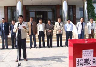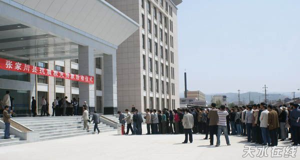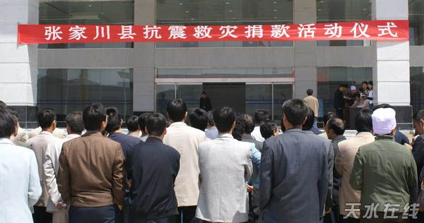 5月15日上午,張家川縣在行政廣場開展抗震救災捐款活動,這次活動共捐款46430元。