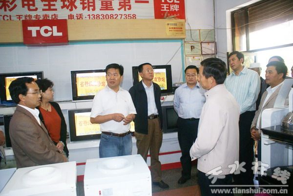 8月29日,甘肅省財政廳副廳長馬自學、省財政廳經(jīng)濟建設處處長徐哲侃一行在天水市副市長趙衛(wèi)東,市財政局局長白曉玲以及張家川縣委書記劉長江,縣委常委、常務副縣長李肖鋒的陪同下深入張家川縣家電下鄉(xiāng)指定銷售網(wǎng)點檢查指導。馬自學一行通過看、查、問、聽等方式對家電下鄉(xiāng)推廣工作、財政補貼資金兌付情況、家電銷售企業(yè)銷售情況和群眾對家電下鄉(xiāng)政策的滿意度等情況進行了詳細了解。馬自學一行對張家川縣家電下鄉(xiāng)推廣工作給予了充分肯定。目前,張家川縣電下鄉(xiāng)產品財政補貼資金兌付進度排列全市五縣兩區(qū)首位。