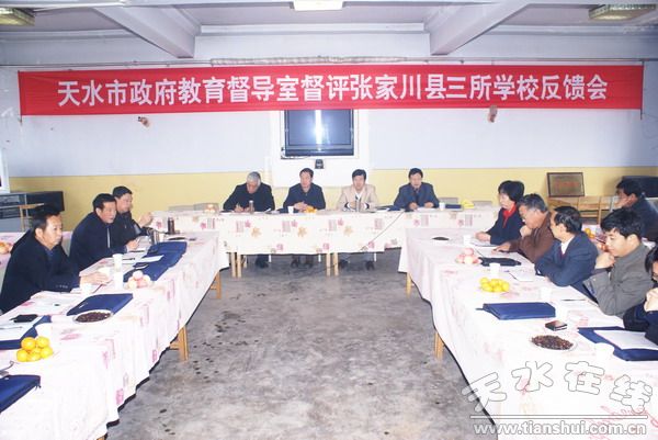 10月26日至27日,天水市政府教育督導(dǎo)室主任毛如君帶領(lǐng)市政府教育督導(dǎo)評(píng)估組一行16人,分三個(gè)小組深入張家川縣第一高級(jí)中學(xué)、龍山鎮(zhèn)中學(xué)和新建小學(xué),采取聽、看、查、問、談的形式對(duì)三所學(xué)校進(jìn)行了督導(dǎo)評(píng)估。