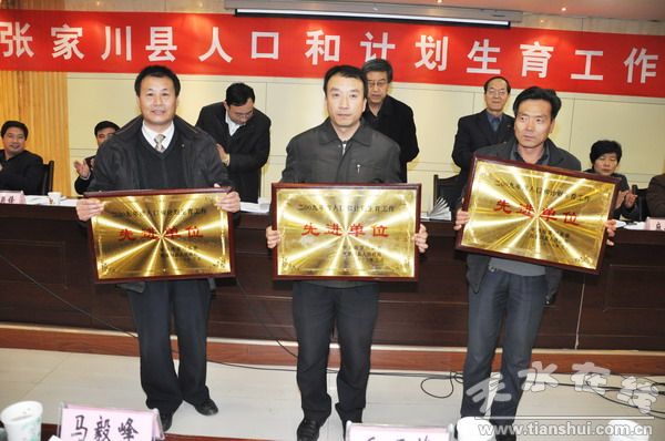 2009年度人口和計劃生育工作綜合考核排名在前三位的張棉鄉(xiāng)、川王鄉(xiāng)、張川鎮(zhèn)領獎