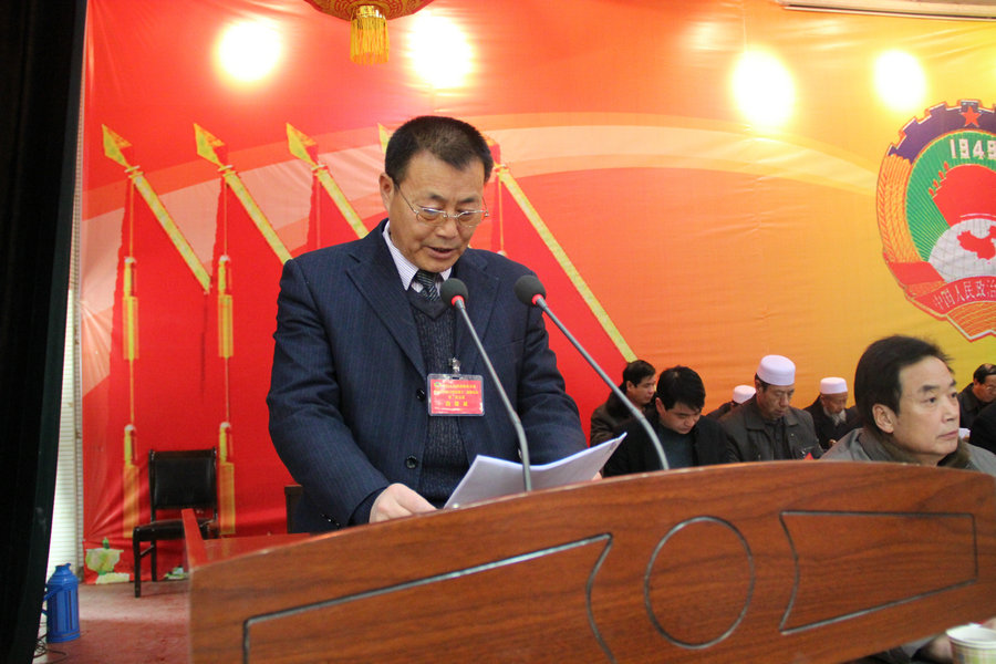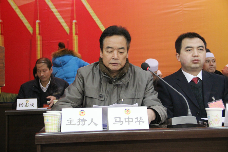大會執(zhí)行主席關(guān)春生、馬玉鳳、張成林、馬中華、馬威、王存珠、馬殿邦、楊志成、王國強(qiáng)、馬文學(xué)、馬振平、 王小兵、王柯玉、李元珍、馬騁、馬玉萍、蘇建明、洪斌在主席臺就座?h政協(xié)副主席馬中華主持會議。