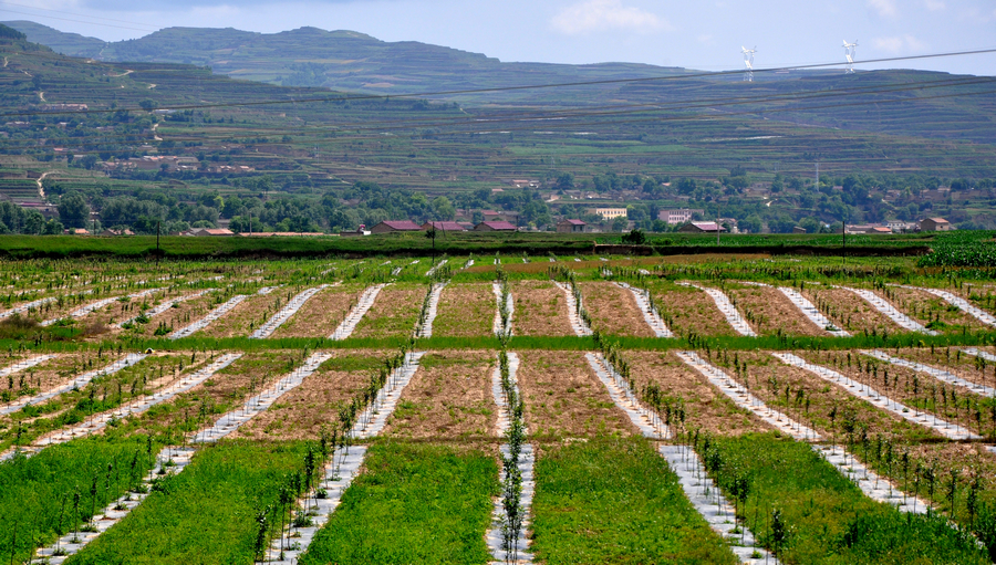 6月27日,陽光明媚,經(jīng)過一場大雨的洗禮,張家川大地萬木蔥綠,欣欣向榮?h果樹站技術(shù)人員在龍山鎮(zhèn)馬河村花牛蘋果園看到,今年春季建設(shè)的標(biāo)準(zhǔn)化蘋果示范園縱橫成行,一排排像列隊(duì)的士兵整齊而立,健壯的蘋果樹苗新發(fā)的幼葉和嫩梢碧綠如洗,充滿生機(jī)。經(jīng)過技術(shù)人員隨機(jī)抽樣調(diào)查,該定植點(diǎn)成活率達(dá)到98%以上,長勢十分喜人。