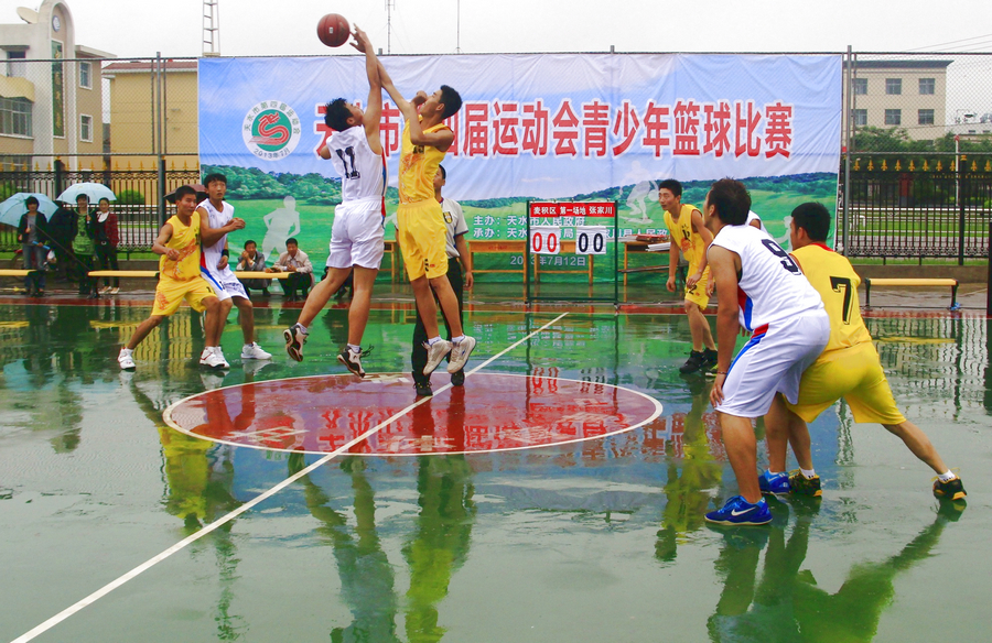 開賽當天,共進行了12場比賽。首場比賽中,身著黃色球衣的張家川代表隊17:19不敵麥積區(qū)代表隊。