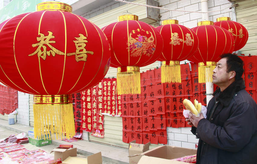 在龍山鎮(zhèn)一處臨時(shí)設(shè)立的春聯(lián)交易市場(chǎng),秦安縣隴城鎮(zhèn)張國(guó)軍忙著做生意。他告訴筆者,在龍山鎮(zhèn)賣春聯(lián)已經(jīng)有10個(gè)年頭了!艾F(xiàn)在農(nóng)民過年購(gòu)物可舍得花錢了。今年我特意訂購(gòu)了這種布料質(zhì)地的春聯(lián),訂貨價(jià)就要16元一副,賣20塊錢,也沒有人討價(jià)還價(jià)。上一個(gè)集市賣了5副,估計(jì)下一個(gè)集市的銷量會(huì)更好!睆垏(guó)軍恨不得給筆者推銷一副。