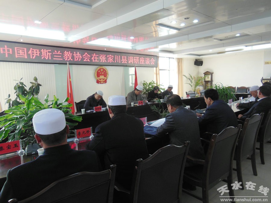 調(diào)研結(jié)束后,隨即在縣政府三樓常務(wù)會議室召開座談會,聽取了張家川縣伊斯蘭教工作匯報,并與部分阿訇代表、寺管會代表進行了座談交流。