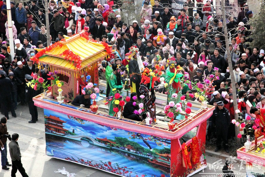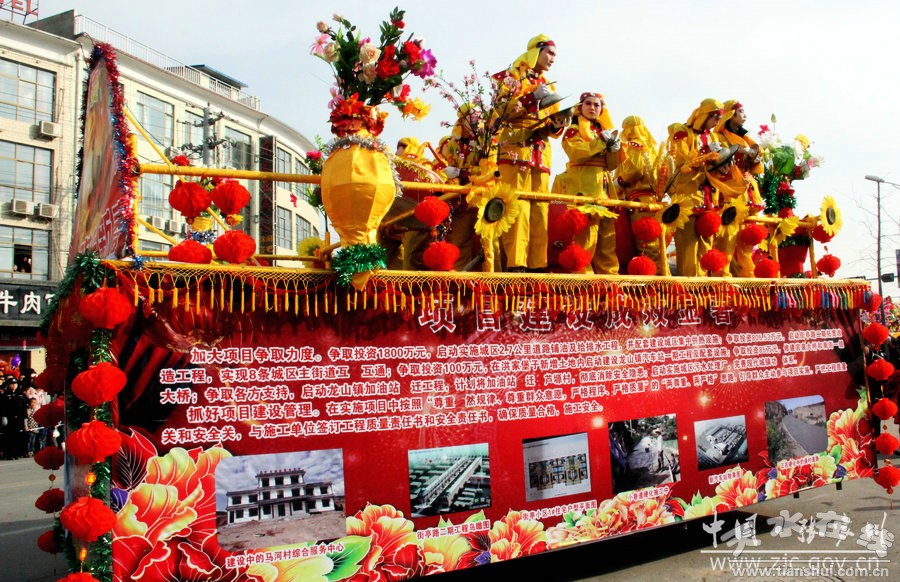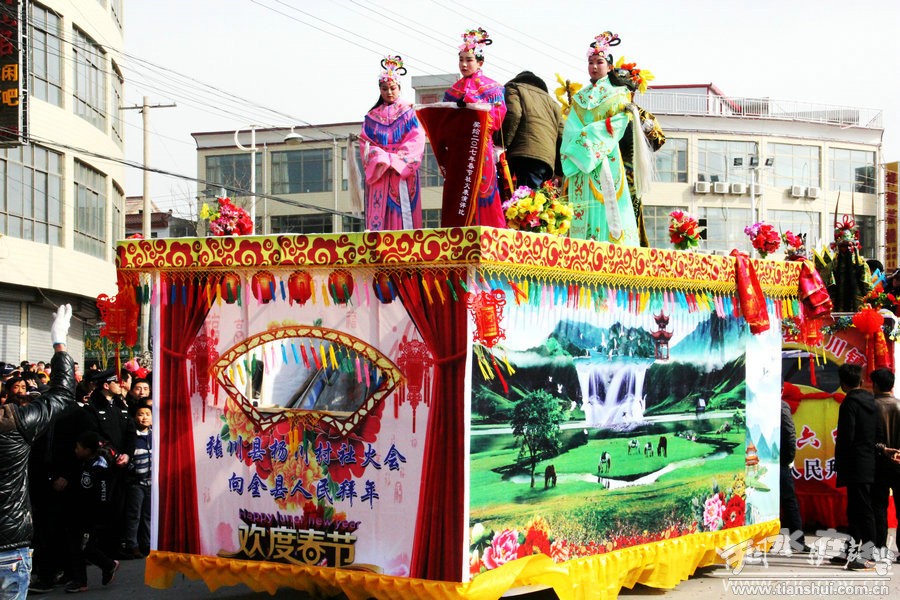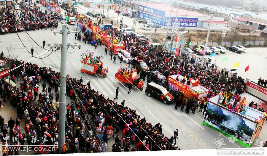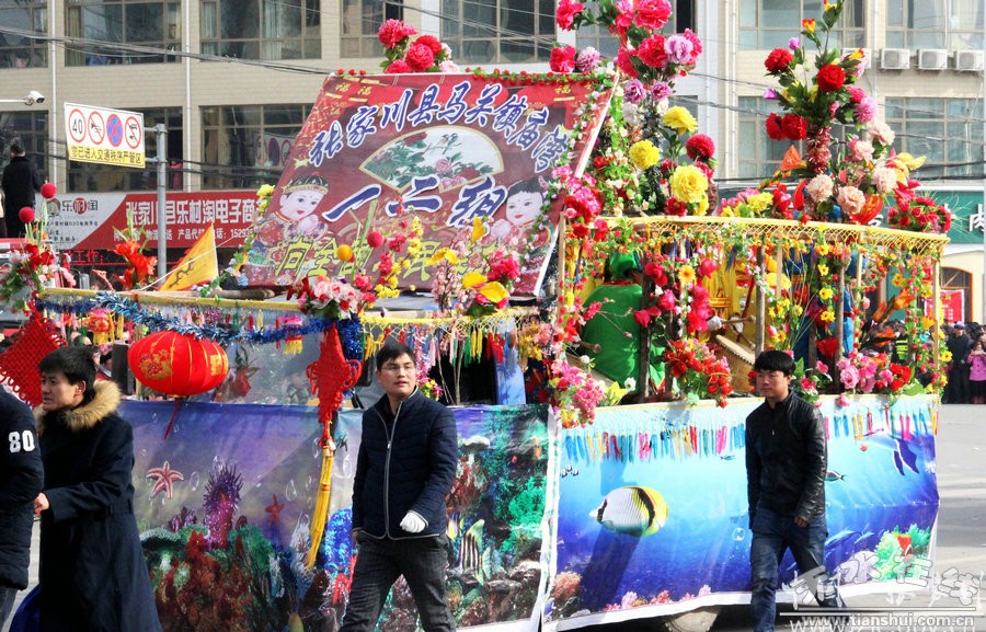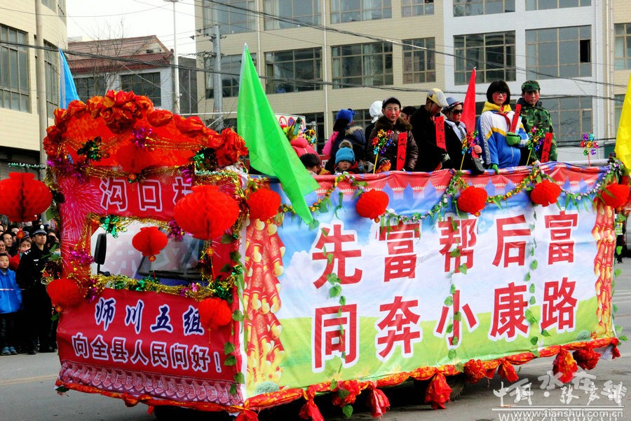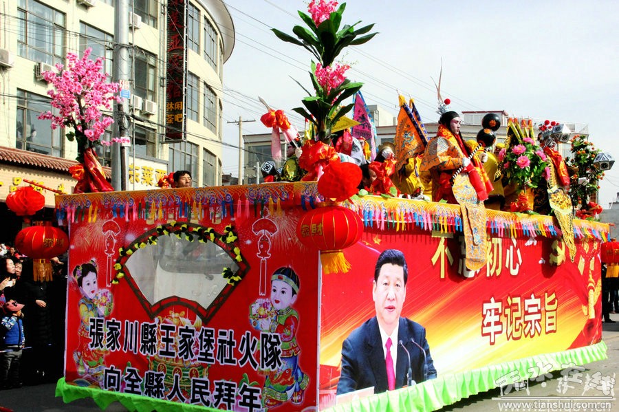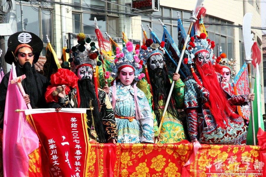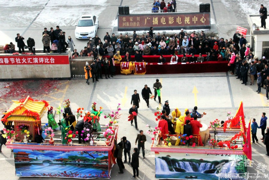 此次社火表演歷時(shí)六個(gè)多小時(shí),一輛輛彩車(chē),光彩奪目;一陣陣鼓聲,激烈歡快,充分展現(xiàn)了張家川縣經(jīng)濟(jì)社會(huì)跨越發(fā)展欣欣向榮的景象。歡快的鑼鼓敲起來(lái),輕盈的舞步跳起來(lái),鮮艷的紅綢飄起來(lái),和著春天的腳步,張家川回族自治縣33萬(wàn)回漢人民又踏上了新的征程。