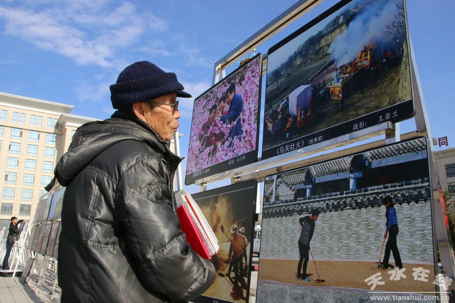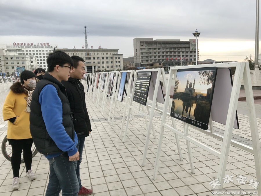 11月28日,“我用鏡頭說變化”喜慶黨的十九大“金徽杯”全民攝影大賽獲獎作品巡展在張家川縣行政中心廣場開展,吸引了眾多群眾前來觀看。有的從獲獎作品中尋找張家川本地攝影師的作品,有的則尋找著包含張家川元素的攝影作品,還有人通過照片品味著近幾年來天水經(jīng)濟社會文化等方面發(fā)生的新變化、取得的新成就和新發(fā)展。
