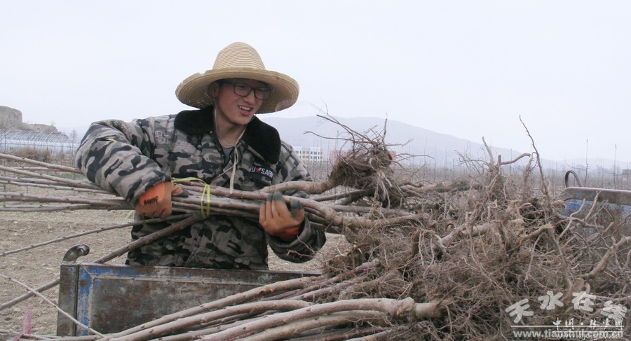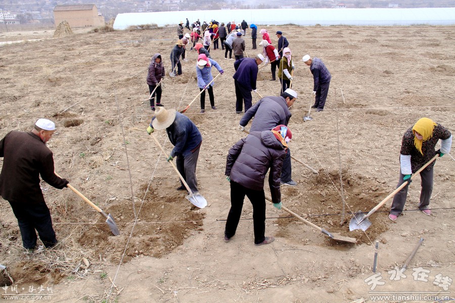 3月16日,走進(jìn)位于張家川縣龍山鎮(zhèn)的馬河現(xiàn)代農(nóng)業(yè)綜合示范園,立刻就被眼前熱火朝天的勞動場景所吸引住,趁著大好天氣,農(nóng)戶們正在加緊栽植著櫻桃苗,栽植現(xiàn)場,撐桿放線、揮鋤挖坑、扶苗栽種、填土澆水,干勁十足。