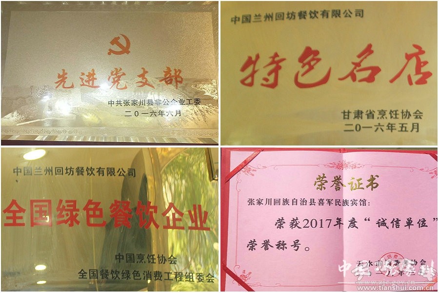 陜西回坊一歲羊餐飲管理有限公司創(chuàng)始人劉喜軍是張家川縣張家川鎮(zhèn)楊上村人,今年43歲,他是一名黨員,退役軍人,退伍后在縣醫(yī)藥公司上班,2002年下崗后自力更生,先后開(kāi)辦過(guò)摩托專(zhuān)賣(mài)店、民族賓館,投資入股愛(ài)家生活超市,如今他在陜西寶雞又勇闖餐飲商海。由于勤奮打拼,誠(chéng)信經(jīng)營(yíng),他的企業(yè)先后被張家川縣非公企業(yè)工委評(píng)選為“先進(jìn)黨支部”,被天水消費(fèi)者協(xié)會(huì)評(píng)選為2017年“誠(chéng)信單位”。