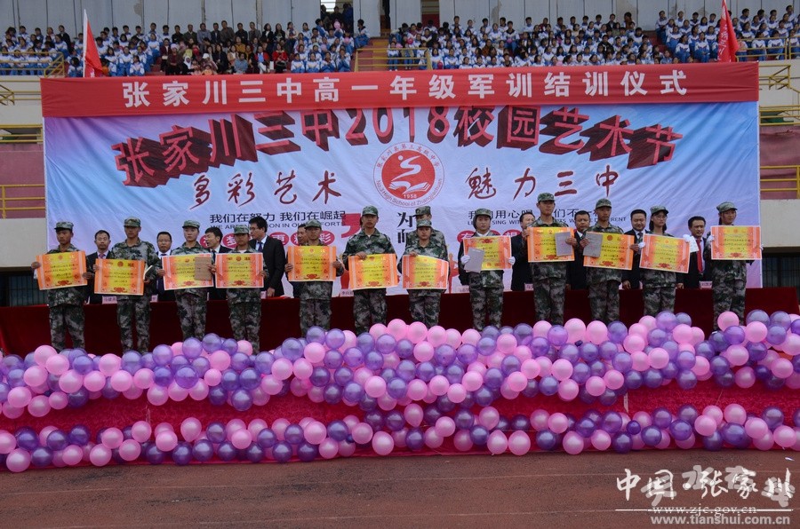 秋風(fēng)送爽,石榴飄香。9月30日,張家川縣三中2018級(jí)高一新生軍訓(xùn)結(jié)訓(xùn)儀式暨2018校園藝術(shù)節(jié)在縣體育中心舉行?h人武部、縣教育體育局相關(guān)負(fù)責(zé)人和10位教官、縣三中全體師生參加了典禮。