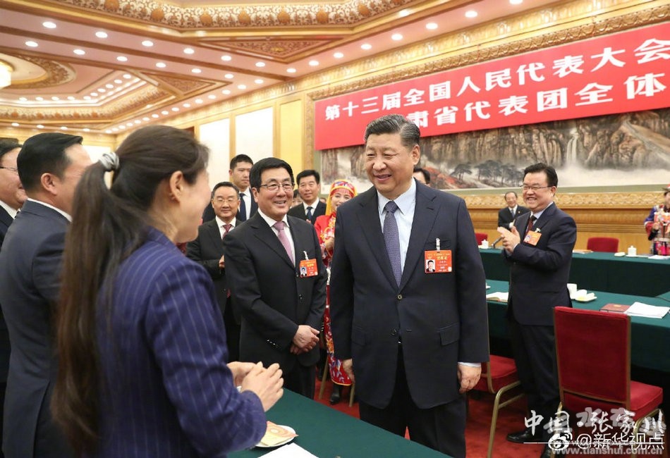 (3月7日下午,中共中央總書記、國家主席、中央軍委主席習近平參加十三屆全國人大二次會議甘肅代表團審議。)