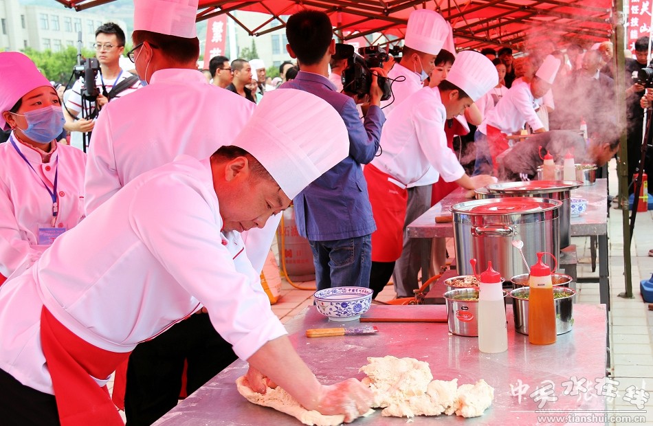 比賽現(xiàn)場(chǎng),選手們由準(zhǔn)備食材開(kāi)始,到和面切菜、舞勺弄鏟、擺盤(pán)裝碗,忙得熱火朝天、不亦樂(lè)乎,通過(guò)展示各自的絕活,力求達(dá)到形、色、香、味與營(yíng)養(yǎng)的完美結(jié)合,在繼承優(yōu)秀傳統(tǒng)飲食文化的基礎(chǔ)上又大膽創(chuàng)新、推陳出新,每道菜、每碗面都飽含了濃厚深情的張家川味道。