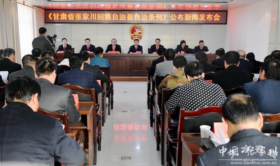 11月14日,《甘肅省張家川回族自治縣自治條例》修訂公布新聞發(fā)布會召開,縣人大常委會主任李肖鋒,縣委常委、常務(wù)副縣長趙東紅,縣人大常委會副主任汪麗琴、妥保平、米文貴、王金祥出席新聞發(fā)布會?h委常委、宣傳部長馬庭堅(jiān)主持新聞發(fā)布會。