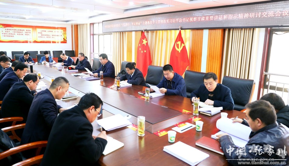 11月21日下午,縣委書記、縣委主題教育領(lǐng)導小組組長陳晰主持召開中共張家川縣委常委會“不忘初心、牢記使命”主題教育學習貫徹落實習近平總書記視察甘肅重要講話和指示精神研討交流會議,集體學習習近平總書記在甘肅省考察工作結(jié)束時的講話以及《中共甘肅省委關(guān)于深入學習貫徹習近平總書記視察甘肅重要講話精神努力譜寫加快建設(shè)幸福美好新甘肅不斷開創(chuàng)富民興隴新局面時代篇章的決定》《中共天水市委關(guān)于貫徹落實〈中共甘肅省委關(guān)于深入學習貫徹習近平總書記視察甘肅重要講話精神努力譜寫加快建設(shè)幸福美好新甘肅不斷開創(chuàng)富民興隴新局面時代篇章的決定〉的意見》?h委常委會班子成員圍繞學習貫徹落實習近平總書記視察甘肅重要講話和指示精神進行了研討交流。