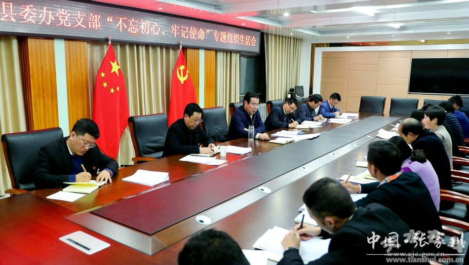 按照縣委主題教育領(lǐng)導(dǎo)小組部署要求,12月11日下午,中共張家川縣委辦公室黨支部召開“不忘初心、牢記使命”專題組織生活會?h委書記陳晰和縣委辦黨支部全體黨員參加會議。
