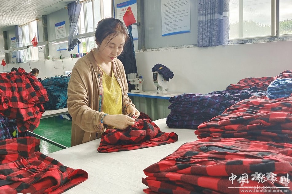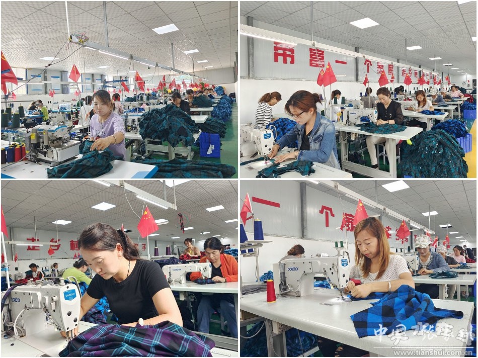 一臺(tái)縫紉機(jī),一把椅子,一塊塊裁剪好的布料經(jīng)過(guò)車間女工的巧手,瞬間就變成了一件件精美的服裝。近日,記者在張家川縣龍山鎮(zhèn)蘆塬村卓越服裝廠看到,來(lái)自蘆塬村及周邊村的女工們正嫻熟的操控著裁剪、縫紉、鎖邊、熨燙等機(jī)器,忙著趕制訂單,歡聲笑語(yǔ)連同“噠噠噠”的縫制聲音奏出了這個(gè)夏天最動(dòng)聽(tīng)的音符。