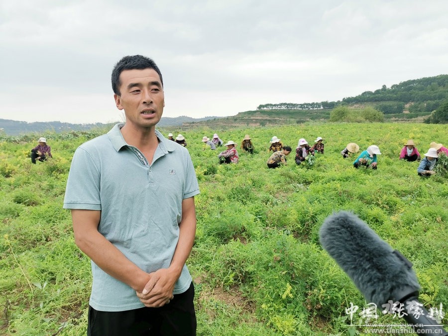 8月3日,恭門鎮(zhèn)麻崖村的一片田地里綠油油的黃茋長勢良好,農(nóng)田里傳出勞動?jì)D女的笑聲。原來,她們正在為黃茋鋤草。鄰村付川村婦女祁引娣告訴記者,像我一樣在這里除草的工人大約有20多人,都是本村和鄰村的閑余勞動力,我們每人每天平均能得到一百多元的報(bào)酬,在家門口就能賺到錢。