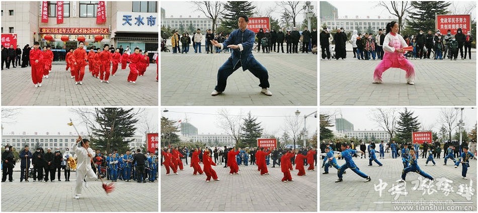 揭牌儀式結(jié)束后,張家川縣尚武堂武術(shù)俱樂(lè)部、天水市武術(shù)協(xié)會(huì)武術(shù)名家、龍山鎮(zhèn)龍泉武術(shù)隊(duì)、縣武協(xié)太極晨練隊(duì)、張家川縣火龍武術(shù)館展示了各家武術(shù)套路,博得觀眾陣陣掌聲。