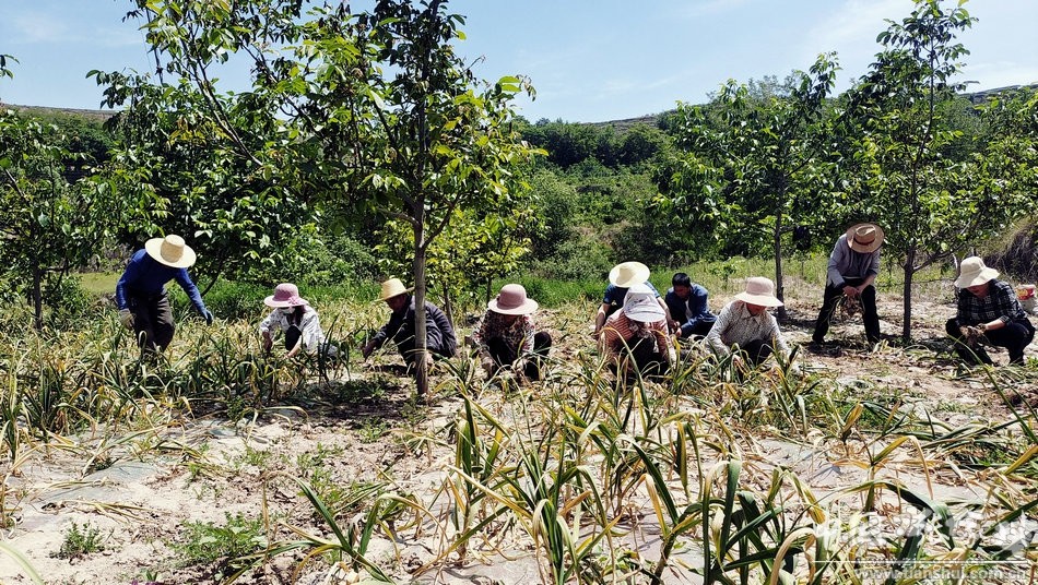 陽洼村于2015年開始種植大蒜,以核桃樹下套種大蒜的形式使畝產(chǎn)經(jīng)濟(jì)收益最大化。多數(shù)農(nóng)戶都種大蒜,少的幾分地,多則三四畝。