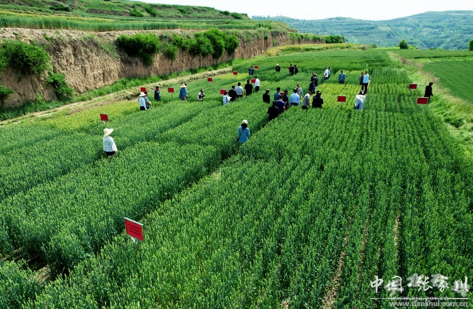 仲夏時節(jié),位于張家川縣大陽鎮(zhèn)梁堡村的山區(qū)組小麥區(qū)域試驗和生產(chǎn)試驗、小麥新品種引進試驗和良種繁殖基地里的小麥長勢喜人,呈現(xiàn)出一片豐收在望的景象。6月10日,天水市2022年冬小麥品種觀摩暨植物新品種權保護培訓班在這里舉行。市農(nóng)業(yè)農(nóng)村局、市種子站、市農(nóng)技中心、市植保站相關負責人,各縣區(qū)種子站(中心)、農(nóng)技(農(nóng)經(jīng))中心負責人及承擔試驗示范的專業(yè)技術人員,天水市農(nóng)科所小麥研究中心、綠色農(nóng)業(yè)發(fā)展中心、天水捷事達種業(yè)有限公司、天水田園春農(nóng)業(yè)科技有限公司、天水方源農(nóng)業(yè)科技有限公司、秦安縣云山良種場和甘谷縣金山良種場負責人,張家川縣政府副縣長鐵寶祿參加現(xiàn)場觀摩。