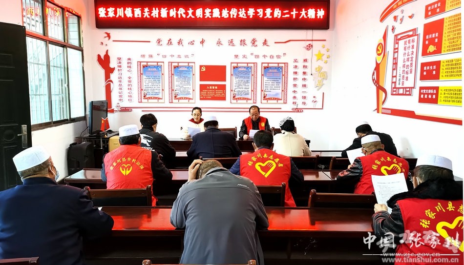 社區(qū)是黨和政府扎根基層群眾的最前沿,是實現(xiàn)人民群眾對美好生活向往的第一線。黨的二十大召開以來,張家川鎮(zhèn)西城黨支部組織干部認真學習黨的二十大精神,對老黨員進行送學上門,同時,依托新時代文明實踐站,組織志愿者深入小區(qū)、巷道、廣場對廣大居民進行二十大精神宣講活動。