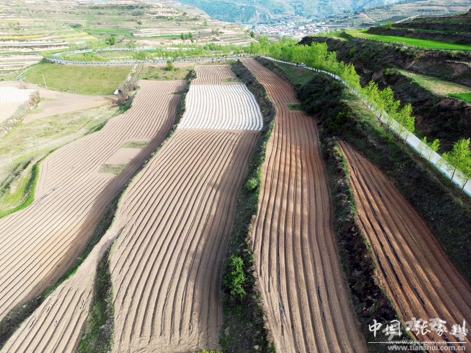 近日,記者沿著張家川縣恭門鎮(zhèn)的山路前進(jìn),看到大路兩側(cè)的大片土地中,今年新種的優(yōu)質(zhì)馬鈴薯品種已經(jīng)長出小苗,一株株綠色的嫩苗長勢喜人。