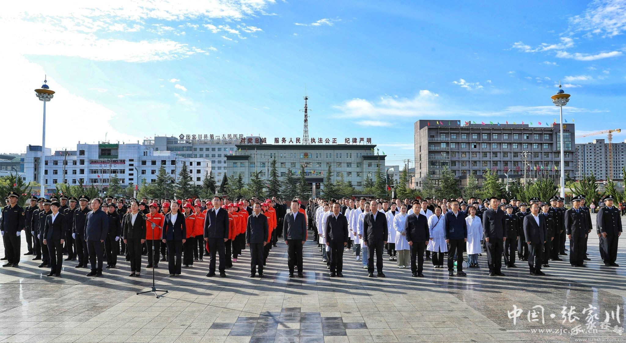 10月1日上午,張家川縣行政中心廣場莊嚴肅靜,慶祝中華人民共和國成立75周年張家川縣迎“國慶”升國旗儀式在此隆重舉行?h四大組織在家領(lǐng)導,縣直機關(guān)各部門干部職工代表,學生、群眾代表參加升旗儀式。