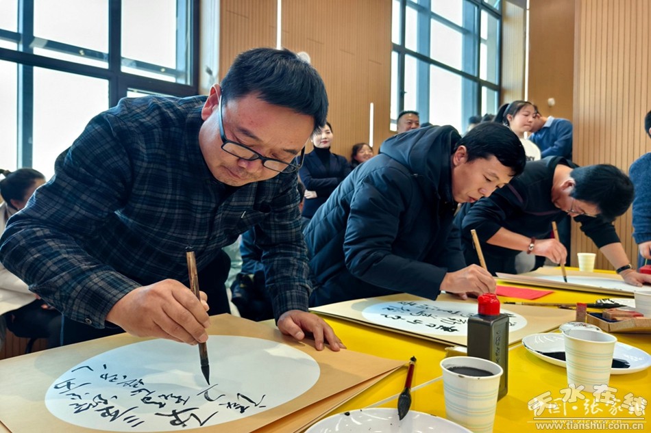 此外,飛花令游戲和書畫創(chuàng)作也是詩友會的一大亮點。主持人以“月、春、花”等字為令,現(xiàn)場觀眾積極參與互動。多位書畫愛好者現(xiàn)場揮毫潑墨,創(chuàng)作出一幅幅精美的書畫作品,并免費贈予觀眾。作品不僅展現(xiàn)了藝術(shù)愛好者的技藝,更傳遞了冬至的美好祝福,讓市民們在欣賞藝術(shù)之美的同時,也感受到了來自文化的溫暖與關(guān)懷。