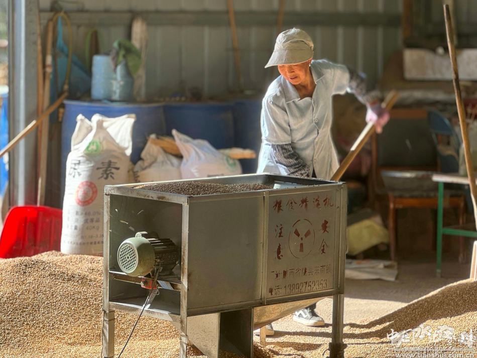 在合作社的晾曬棚里,工人們正忙著晾曬小麥良種。一粒粒小麥種經(jīng)過糧食精選機的篩選、除雜后,飽滿的麥粒鋪展在場地中,在陽光下閃爍著金黃的光澤,工人們不時翻動著麥堆,確保每一粒種子都能充分接受陽光的晾曬,為后續(xù)的存儲、出售、播種做好準(zhǔn)備。