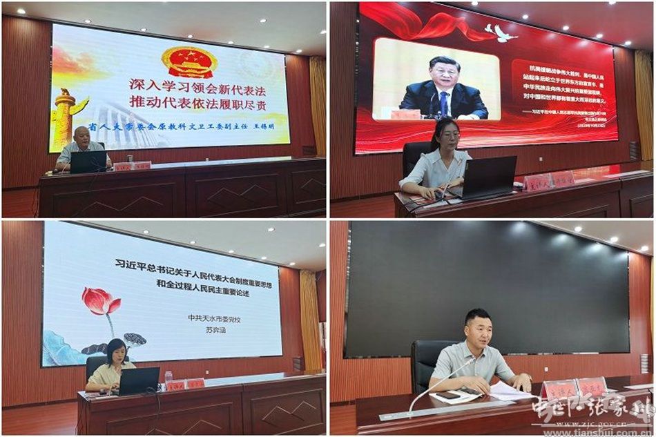 本次培訓班為期3天,邀請了省人大常委會教科文衛(wèi)工委原副主任王錫明、市委黨校黨史與黨建教研部副主任蘇弈涵、中共天津市濱海新區(qū)委員會黨校地方黨史和黨建研究室四級主任科員井媛寧、縣紀委副書記竇亞龍分別圍繞“深入學習領(lǐng)會新代表法,推動代表依法履職盡責”、“習近平總書記關(guān)于人民代表大會制度重要思想和全過程人民民主重要論述”、“抗美援朝的偉大勝利及啟示”、“深入貫徹中央八項規(guī)定精神學習教育”等內(nèi)容作了專題輔導。培訓班還邀請縣人民政府縣長馬創(chuàng)成作了政情通報。將代表培訓與集中視察、政情通報相結(jié)合,理論講授、業(yè)務(wù)知識、現(xiàn)場教學相融合,進一步提高了全縣人大代表的政治素養(yǎng)、理論水平和履職能力,有效激發(fā)新時代人大代表履職活力。