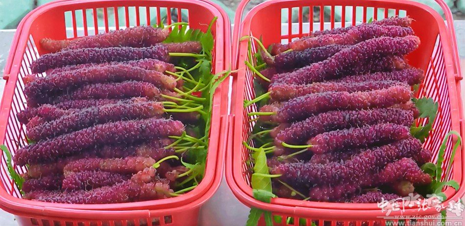 走進合作社的塑料大棚,串串長果桑綴滿枝頭,紫紅與粉紅相間的色澤,勾勒出一幅生機盎然的豐收圖景。未成熟的綠色幼果形似靈動的毛毛蟲,惹人喜愛;成熟果實果長可達12至16公分,最長突破18公分,單果重約20克,色澤由粉紅漸變?yōu)樽虾,果肉香甜多汁,贏得廣大顧客的一致贊譽。