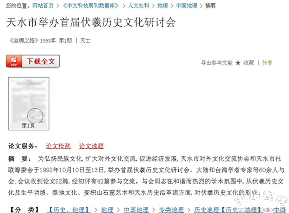 1992年10月天水首屆伏羲歷史文化研討會(報道)