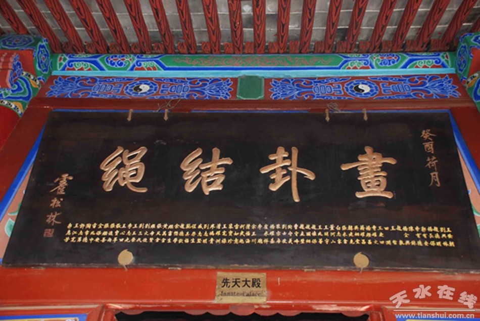 卦臺山伏羲廟“納皮興嫁娶……”楹聯(lián)與畫卦結(jié)繩匾