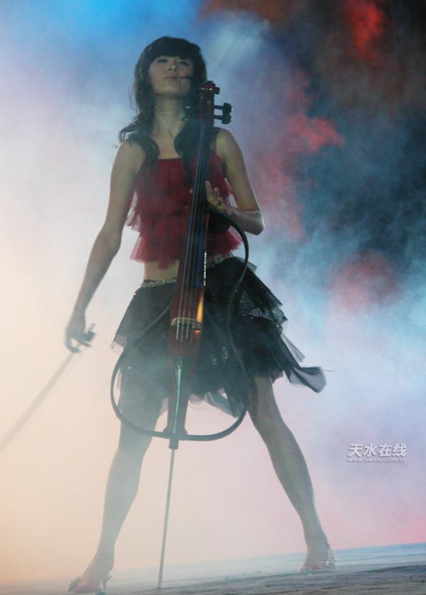 最后就是大家最期待的偶像派明星陳慧琳走上舞臺(tái),熱情的天水觀眾揮舞著熒光棒,高呼著她的名字,整個(gè)會(huì)場的氣氛被點(diǎn)燃。隨著《記事本》的“打開”,演出現(xiàn)場沉浸在她那美妙的音樂旋律中,觀眾們隨著旋律揮舞著熒光棒,把天水人的熱情送給了明星。最后在大家的強(qiáng)烈要求下,她又獻(xiàn)上了《希望》、《一起跳舞》等歌曲。