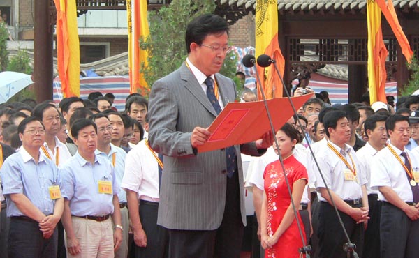 維公元二○○六年七月三日,歲在丙戌年六月八日。中華兒女,匯聚天水,謹(jǐn)以太牢雅樂之儀,發(fā)誠敬之心,致祭于中華民族人文始祖伏羲氏曰: