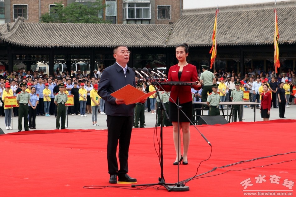 6月20日上午,天水市舉行2014(甲午)年公祭中華人文始祖伏羲大典預(yù)演。市領(lǐng)導(dǎo)王銳、柴金祥、宋尚有、郭奇若、蔣曉強(qiáng)、趙衛(wèi)東、彭鴻嘉、蒲軍、宋德雄、蕭菡、王子生、張仲康、張建杰、白曉玲等出席預(yù)演活動。當(dāng)天上午,所有工作及演出人員全部到位,預(yù)演嚴(yán)格按照祭祀程序進(jìn)行,依次為奏樂、擊鼓鳴鐘、恭讀祭文、樂舞告祭、敬獻(xiàn)花籃。 |
