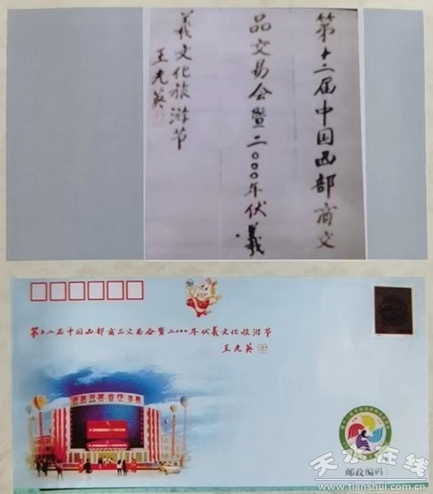 2000年,我市舉辦第12屆川陜甘寧中國西部商品交易會(huì)暨天水伏羲文化旅游節(jié),市上擬邀請(qǐng)一位國家領(lǐng)導(dǎo)人題寫節(jié)會(huì)名。李升堂同志反復(fù)考慮比較后,請(qǐng)時(shí)任全國人大常委會(huì)副委員長、我國著名的經(jīng)濟(jì)學(xué)家、81歲高齡的王光英先生題寫了“第12屆中國西部商品交易會(huì)暨2000年伏羲文化旅游節(jié)”,成為本屆節(jié)會(huì)的會(huì)標(biāo)。天水市郵政局為此專門制作了首日封在全國郵政系統(tǒng)發(fā)行,既擴(kuò)大了這屆節(jié)會(huì)影響,也為節(jié)會(huì)增色不少。