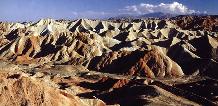 該地貌群位于臨澤縣倪家營鄉(xiāng)紅山灣村,海拔2180米,東西長約45公里,南北寬約10公里。據(jù)有關(guān)人士介紹,臨澤丹霞地貌群以其面積大、集中,層理交錯、巖壁陡峭、氣勢磅礴、造型奇特、色彩斑斕而稱奇,有紅色、黃色、白色、綠藍色,色調(diào)有順山勢起伏的波浪狀,也有從山頂斜插山根的,猶如斜鋪的彩條布,在陽光的照射下,像披上了一層紅色的輕紗,熠熠泛光,色彩異常艷麗,讓人驚嘆不已。同時該地貌群與梨園河相映成趣,集神奇的自然和獨特的人文景觀于一體,形成很高的旅游觀賞價值,令游人頃倒。在臨澤,最具為獨特的丹霞地貌景觀有七彩霞峽、七彩塔、七彩屏、火海、七彩練、琉璃峰、七彩瑚、七彩菇、大扇貝11處,登上山頂,極目遠(yuǎn)眺,但見山巒、河流、田園、村莊、炊煙,宛如一幅風(fēng)景名畫,盡收眼底,人行其間,感到精神振奮、心曠神怡。(趙東文 鄭復(fù)新攝影)