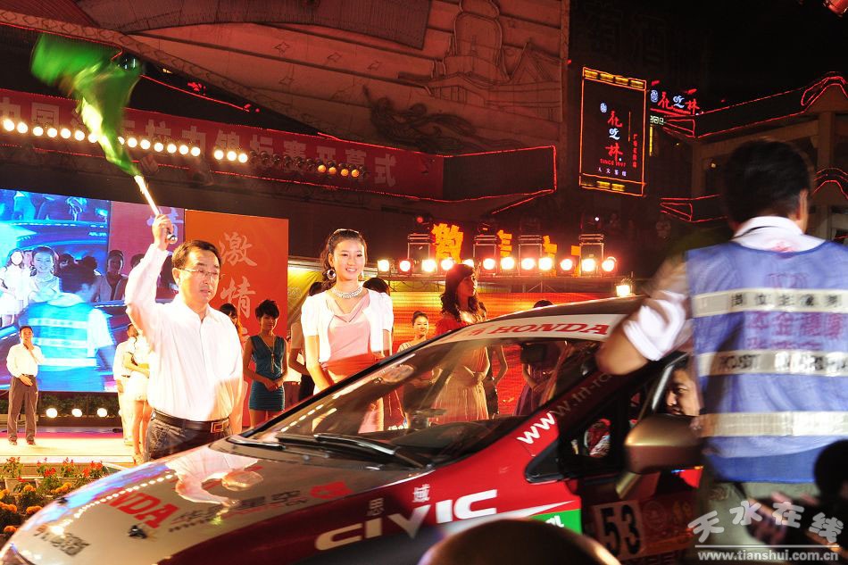 天水在線張掖甘州區(qū)報道 7月1日晚9時,甘肅省張掖市甘州區(qū)中心廣場彩旗飄揚、燈火輝煌、人頭攢動,火熱激情涌動著整個城市,2011年“絲路春”杯張掖·中國汽車拉力錦標賽(CRC)隆重開幕。一曲《我要飛》拉開了2011年“絲路春”杯張掖·中國汽車拉力錦標賽開幕序幕,點燃了開幕式的熱情。當天正值中國共產(chǎn)黨成立九十周年華誕,現(xiàn)場與會人員全體起立,共同唱響《沒有共產(chǎn)黨就沒有新中國》,中國奧委會名譽主席、原國家體育總局局長袁偉民親臨開幕式現(xiàn)場,甘肅省人大常委會副主任崔玉琴宣布:2011年“絲路春”杯張掖·中國汽車拉力錦標賽開幕,現(xiàn)場禮炮齊鳴、煙火升空,掌聲如雷,在轟鳴的賽車聲中金張掖絲路春拉力車隊等26個車隊發(fā)車,將開幕式氣氛推向高潮。