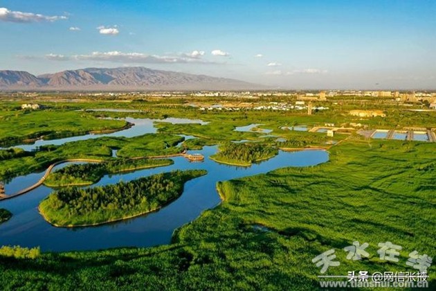 6月17日傍晚,無(wú)人機(jī)航拍鏡頭下的張掖國(guó)家濕地公園,滿目清翠,碧水藍(lán)灣,一幅塞上江南、戈壁水鄉(xiāng)的錦繡畫(huà)卷。張掖國(guó)家濕地地處城市北郊,與市區(qū)緊密相連,占地面積3.6萬(wàn)多畝,是張掖重要的生態(tài)系統(tǒng),被譽(yù)為“城市之肺”,是一顆跳動(dòng)的綠色心臟。(記者 成林)